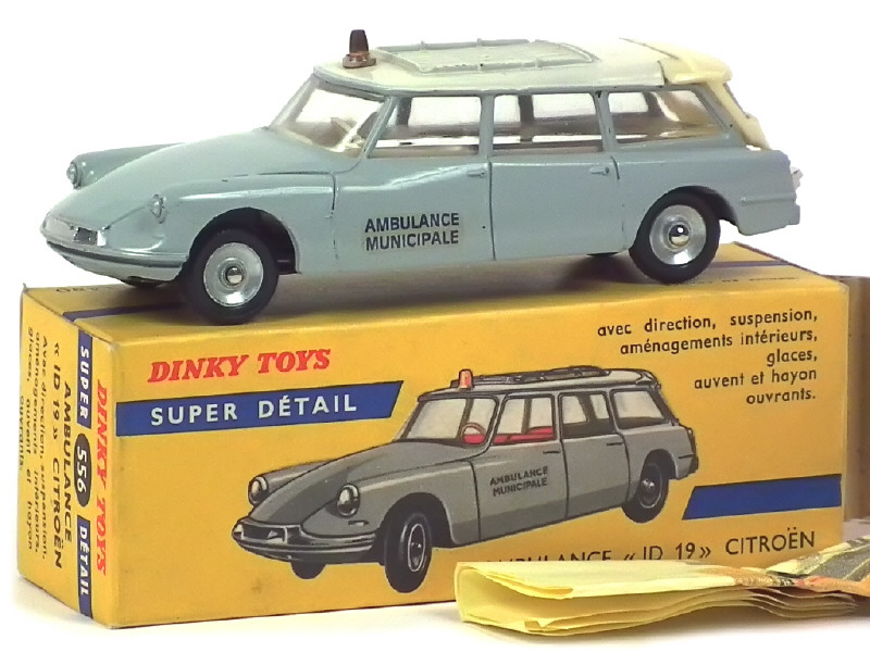 DINKY TOYS (FRANCE) 556 CITROËN ID 19 Break 'AMBULANCE MUNICIPALE' (version avec décalques alignés) gris, toit crème