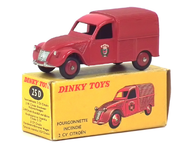 DINKY TOYS (FRANCE) 25D CITROËN 2CV Fourgonnette de pompiers rouge, jantes convexes rouges