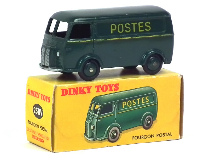DINKY TOYS (FRANCE) 25BV PEUGEOT D3A 'POSTES' (première version avec inscriptions au tampon) vert foncé