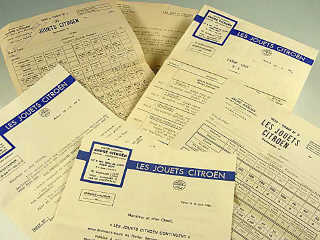 on y retrouve : 2 tarifs de 1935, 2 bons de commande, une petite note présentant le tarif de 1936 & un courrier du 20 février 1935 qui démentit toute cessation d'activité dans le domaine du jouet & qui donne les prévisions pour 1935