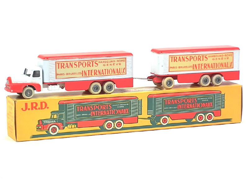 JRD (FRANCE) 127 UNIC LAUTARET 'TRANSPORTS INTERNATIONAUX' avec remorque orange & blanc