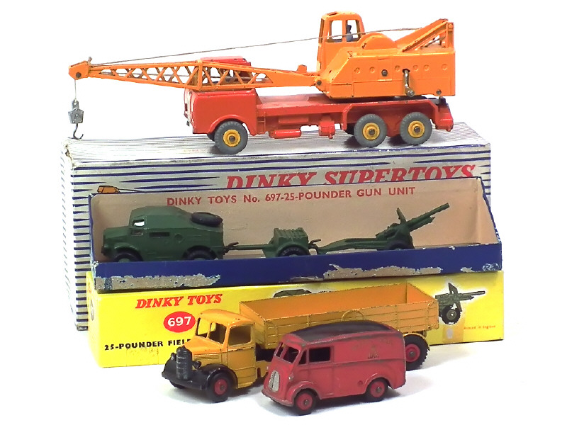 états de 'B' à 'E' - comprend : BEDFORD semi-remorque plateau à ridelles, MORRIS Van 'ROYAL MAIL', camion grue COLES (avec boîte en état 'c') & pièces d'artillerie de 25-POUNDER FIELD GUN SET (avec boîte en état 'c' - manque cale)