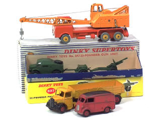 DINKY TOYS (GB) Ensemble de 4 véhicules, une remorque & un canon