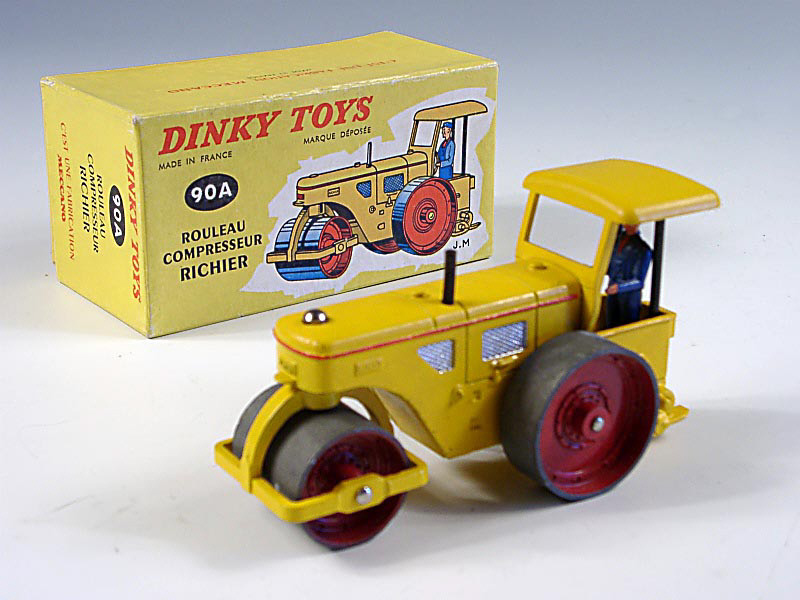 DINKY TOYS (FRANCE) 90A RICHIER Rouleau compresseur jaune & rouge