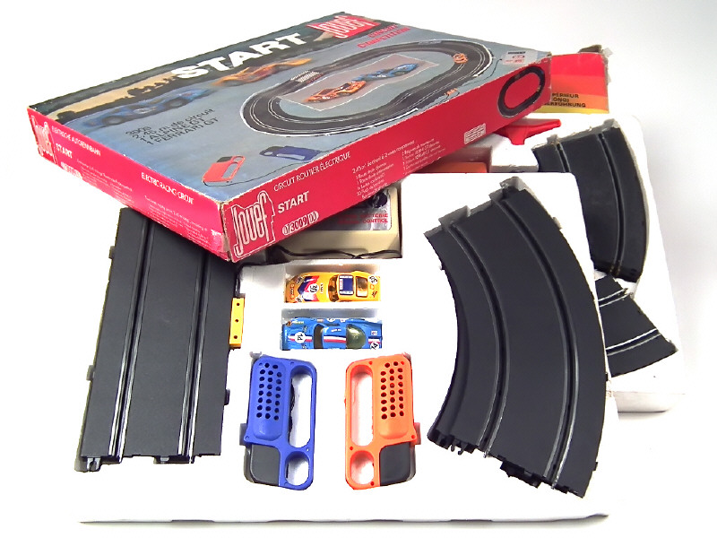 non testé - dimensions : 55 x 40 cm - contient : FERRARI 250 GTO, ALPINE 3000, 2 poignées, 2 rails droits, 6 rails courbes, transformateur & différents accessoires - quelques petits manques
