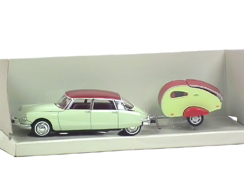 DIVERS CITROËN DS 19 avec caravane ivoire & rouge