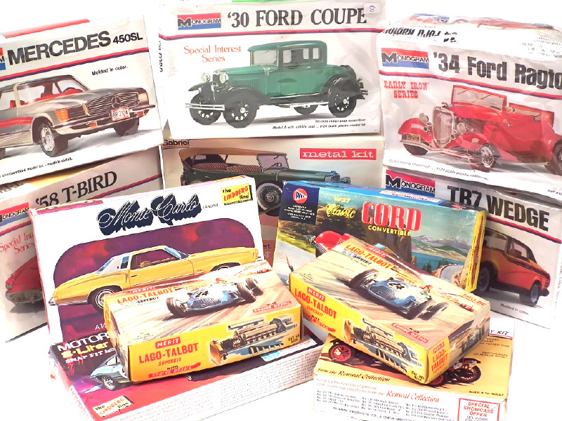 différentes échelles - on y retrouve notamment les marques : MONOGRAM, HELLER, PYRO, MERIT, REVELL & GRIP - semblent complets (quelques exemplaires montés) - certains modèles sous blisters jamais ouverts - quelques boîtes en état 'c'