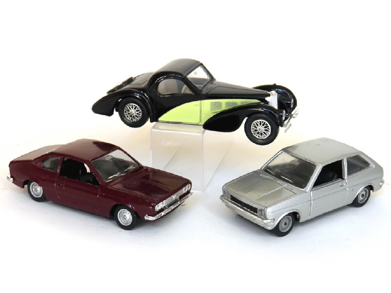 états de 'A' à 'B' - miniatures reproduisant les modèles : FORD FIESTA, LANCIA BETA & BUGATTI ATALANTE