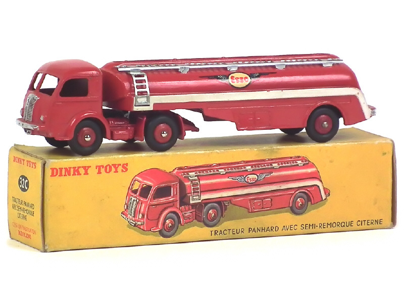 DINKY TOYS (FRANCE) 32C PANHARD Semi-remorque citerne 'ESSO' (version avec jantes convexes) rouge (décalques 'petites ailes')
