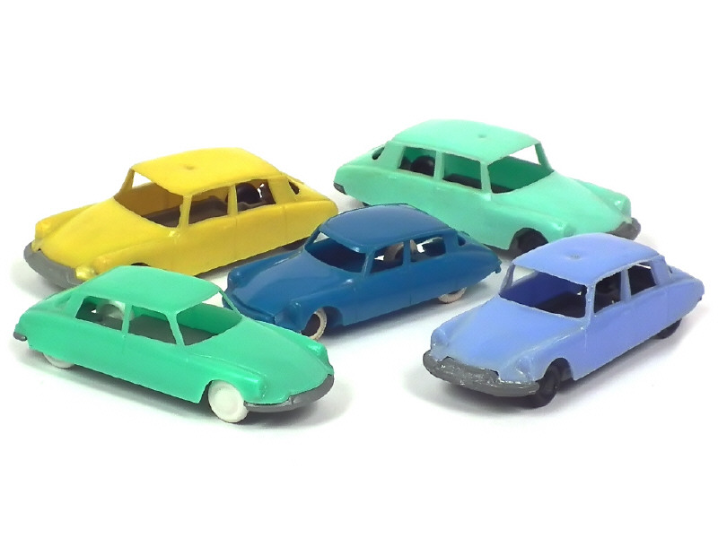 états de 'A' à 'C' - comprend : 3 voitures 'CRIO' gravé sur le coffre - on y joint une CITROEN DS 19 copie du modèle CORGI TOYS réalisée en plastique (made in England) - quelques petites déformations