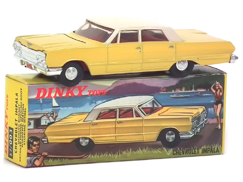 DINKY TOYS (GB) 57/003 CHEVROLET IMPALA moutarde, toit blanc