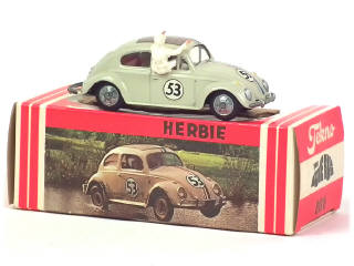 3ème version de 1969 avec clignotants au dessus des phares, jantes nickelées, aménagement intérieur & suspension - avec 3 figurines - tiré du film de Walt Disney 'UN AMOUR DE COCCINELLE' - boîte proche de l'état 'a'