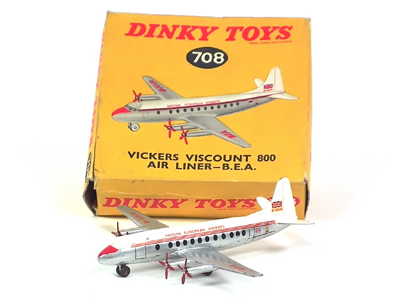 DINKY TOYS (GB) 708 VICKERS VISCOUNT 'BRITISH EUROPEAN AIRWAYS' gris métal, crème & rouge