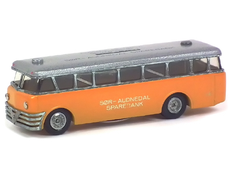 TEKNO (DANEMARK) 854 VOLVO Autobus 'SOR-AUDNEDAL SPAREBANK' jaune & gris métal