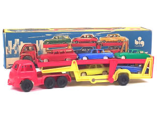 BIG (ALLEMAGNE) 45 Camion semi-remorque transport de voitures rouge, jaune, bleu & vert