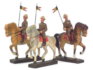 LINEOL (ALLEMAGNE) Ensemble de 3 lanciers belges sur leur monture