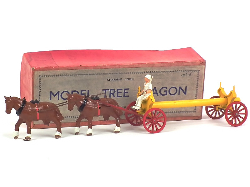 comprend : une remorque hippomobile fardier, 2 chevaux (2 pattes cassées) & un conducteur - avec accessoires & parties manquantes