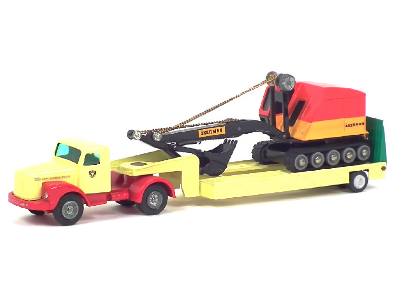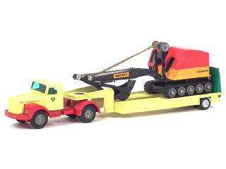 TEKNO (DANEMARK) 861 SCANIA VABIS Semi-remorque surbaissée porte-engins jaune, rouge & vert