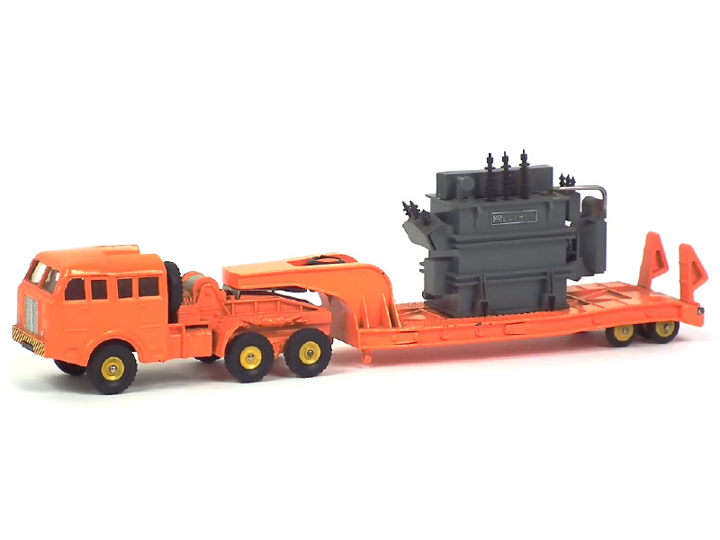 DINKY TOYS (FRANCE) 898 BERLIET Semi-remorque plateau porte-transformateur (version avec jantes de remorque convexes) orange
