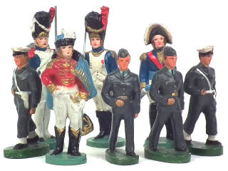 réalisation en composition - hauteur 9,5 cm - comprend : 4 aviateurs, 2 soldats de la garde impériale & 2 généraux d'Empire
