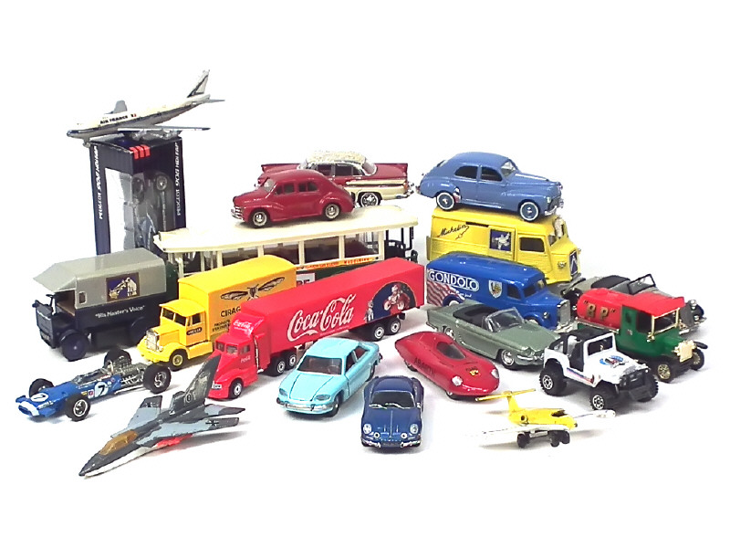 différentes échelles - états de 'A' à 'E' - on y retrouve notamment les marques : ELIGOR, SOLIDO, MATCHBOX, CORGI TOYS, VEREM, SCHUCO & NOREV (avec boîte en état 'b') - quelques manques & parties cassées