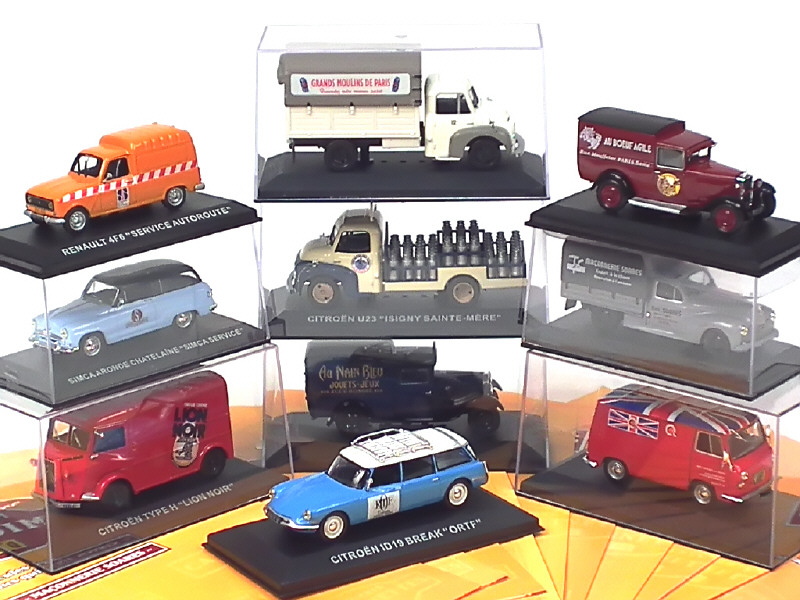 collection 'NOS CHERES CAMIONNETTES D'ANTAN' - miniatures reproduisant les modèles : SIMCA, RENAULT, AUSTIN, PEUGEOT & CITROEN - avec 10 fascicules correspondants