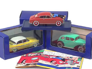 série 'EN VOITURE TINTIN' - comprend : la LANCIA de l'Italien de l'Affaire Tournesol, la voiture des gangsters de TINTIN en Amérique & la CHRYSLER jaune de l'Affaire Tournesol - avec certificats