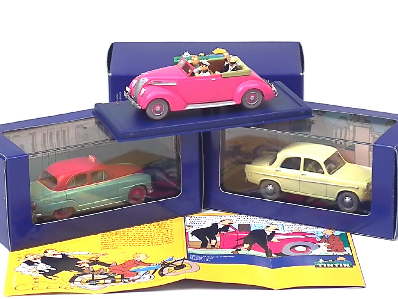 série 'EN VOITURE TINTIN' - comprend : le taxi SIMCA de l'Affaire Tournesol, l'ALFA des journalistes des Bijoux de la Castafiore & le cabriolet des DUPONDT du Sceptre d'Ottokar - avec certificats