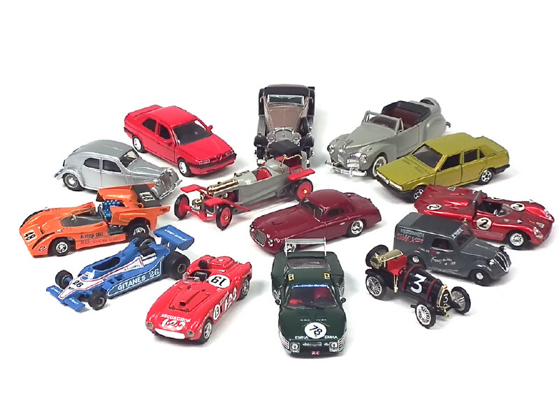 miniatures reproduisant notamment les modèles : ALFA ROMEO, Mc Laren, FERRARI, CADILLAC, FIAT & LINCOLN - on y retrouve notamment les marques : PROJETTO K, TOP MODEL, RIO, BRUMM & MEBETOYS - quelques éléments à refixer - petits manques