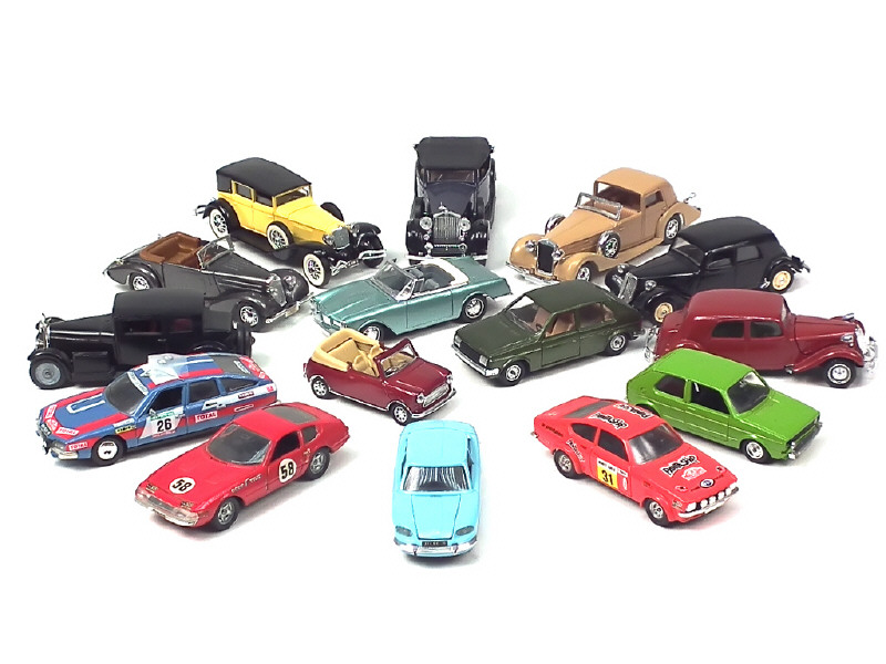 miniatures reproduisant notamment les modèles : ROLLS ROYCE, DELAGE, CITROEN, PANHARD, VOISIN & FACEL VEGA - quelques éléments cassés à recoller - petits manques