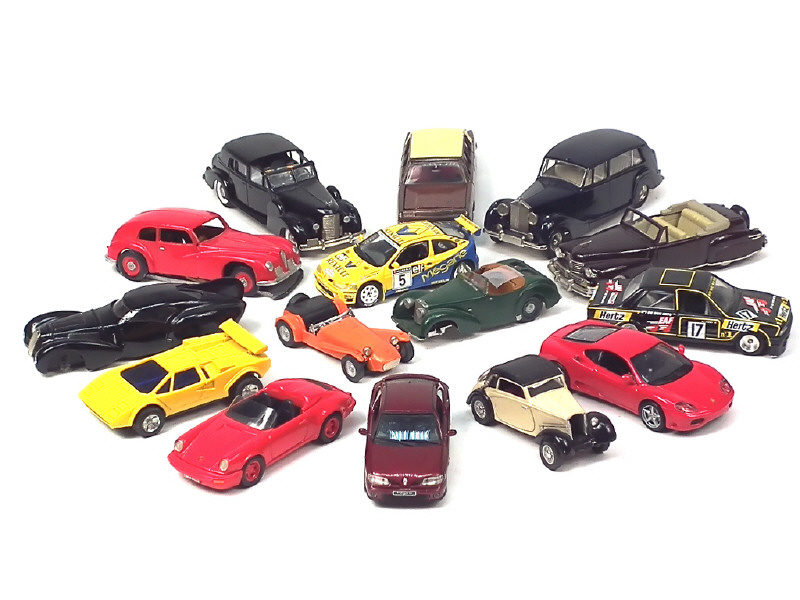états de 'A' à 'F' - miniatures reproduisant notamment les modèles : CADILLAC, ROLLS ROYCE, MERCURY, BUICK & PORSCHE - on y retrouve notamment les marques : REXTOYS, REPLICARS, BUBY, CENTURY & TOP 43 - 8 kits métal montés - nombreuses parties cassées à recoller - petits manques