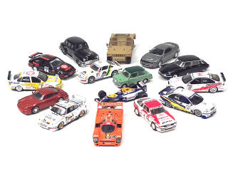 miniatures reproduisant notamment les modèles : PORSCHE, TOYOTA, NISSAN, PEUGEOT & HUMMER - on y retrouve notamment les marques : VICTORIA, ONYX, VITESSE, TROFEU, QUARTZO - quelques éléments cassés à recoller - petits manques