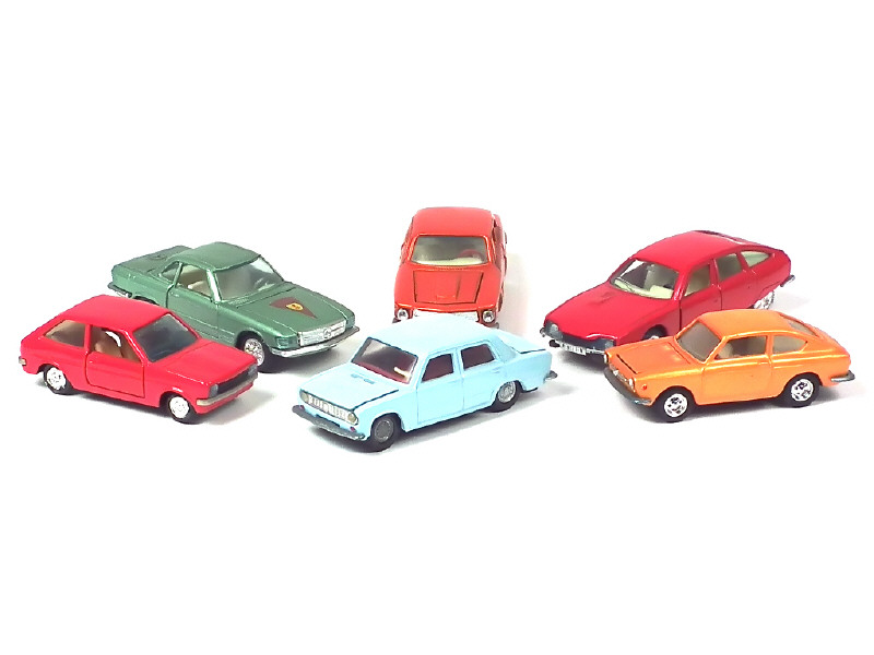 comprend : SEAT 124, 850, ISO-RIVOLTA, FORD FIESTA, MERCEDES BENZ 350SL & CITROEN CX PALLAS (jantes légèrement fondues)