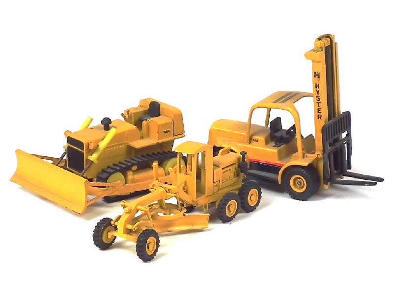 comprend : MASSEY FERGUSON BULLDOZER (manque sortie d'échappement), HUBER-WARCO profileur & HYSTER H150 chariot élévateur - petits détails de peintue ajoutés par endroits