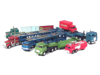 miniatures reproduisant les modèles : KENWORTH (2 exemplaires différents), FREIGHTLINER, HINO & MITSUBISHI (3 exemplaires différents)