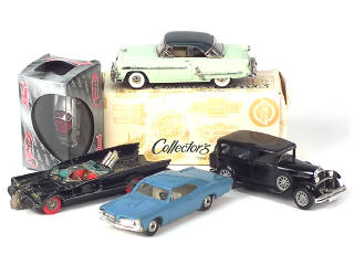 états de 'A+' à 'D' - comprend : FORD SUNLINER 1953 (en boîte état 'b'), PONTIAC GTO (un optique de phare incomplet), TALBOT PACIFIC, PORSCHE 356 (échelle 1/87ème en boîte état 'b') & BATMOBILE (en état 'F') - on y retrouve les marques : COLLECTORS CLASSIC, SCHUCO, CRAGSTAN, ELIGOR & CORGI TOYS