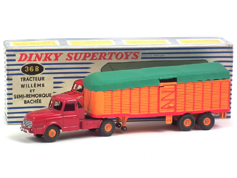 DINKY TOYS (FRANCE) 36B WILLEME Semi-remorque bâché (version avec jantes convexes) rouge & orange, bâche verte