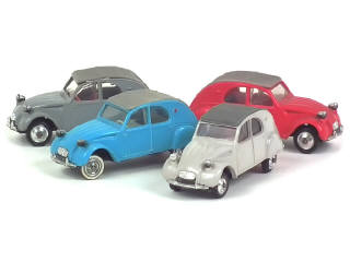 NOREV (FRANCE) 56 Ensemble de 4 CITROEN 2CV AZ gris, bleu & rouge
