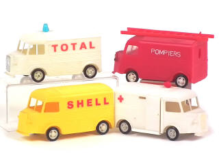 échelle 1/48ème - on y retrouve les publicités & versions : TOTAL, SHELL, ambulance & pompiers - un pare-chocs recollé avec un phare scintillant manquant