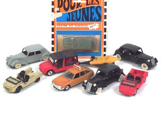 états de 'A' à 'F' - comprend les modèles : TRACTION (3 exemplaires différents dont un motorisé), MEHARI (3 exemplaires différents), GS 'AUTO-ECOLE' & DYANE (sous blister jamais ouvert) - avec manques & parties cassées