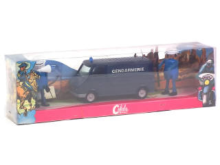 contient : un CITROEN C35, 2 figurines (copies de la marque BIG) & un blister d'accessoires - jamais ouvert - couvercle de boîte légèrement déchiré par endroits