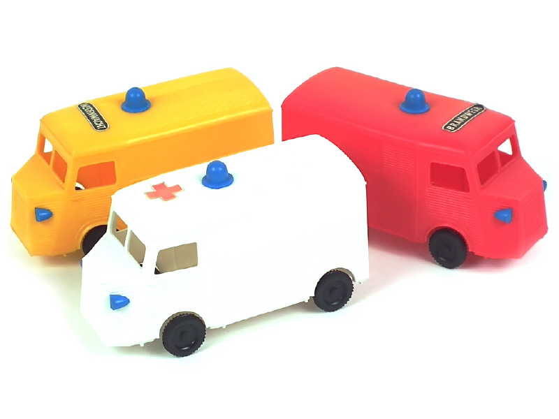 réalisation en plastique souple - longueur 19 cm - comprend : ambulance, 'BRANWEER' & 'WEGENWACHT'