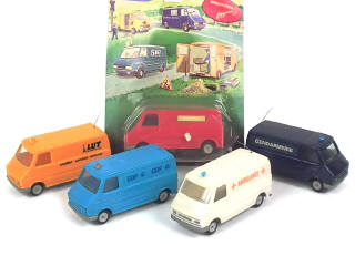 échelle 1/32ème - on y retrouve les publicités & versions : 'AMBULANCE', 'LUT', 'EDF-GDF', 'POMPIERS' (sous blister jamais ouvert en état 'c') & 'GENDARMERIE' (état 'B')