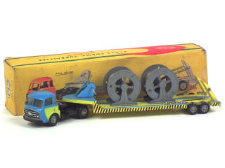 C.I.J. (FRANCE) 4/75 SAVIEM LRS Semi-remorque surbaissée porte-bobines de câble bleu & jaune vert