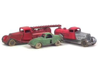états de 'D' à 'E' - comprend les versions : pompiers (cabine repeinte), citerne (traces de métal fatigue) & Peugeot 203 coupé (moteur à clef à revoir) - pneus endommagés