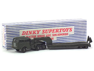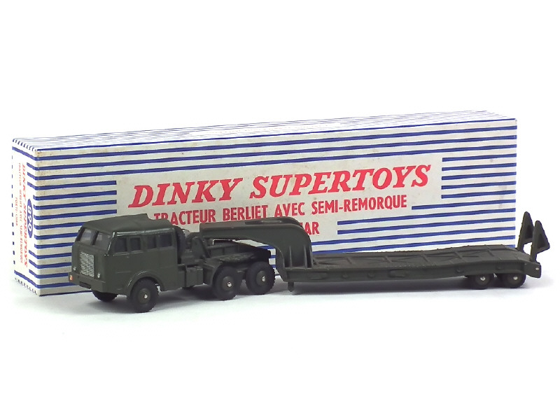 DINKY TOYS (FRANCE) 890 BERLIET Transport de char (version avec jantes du tracteur & de la remorque convexes) kaki