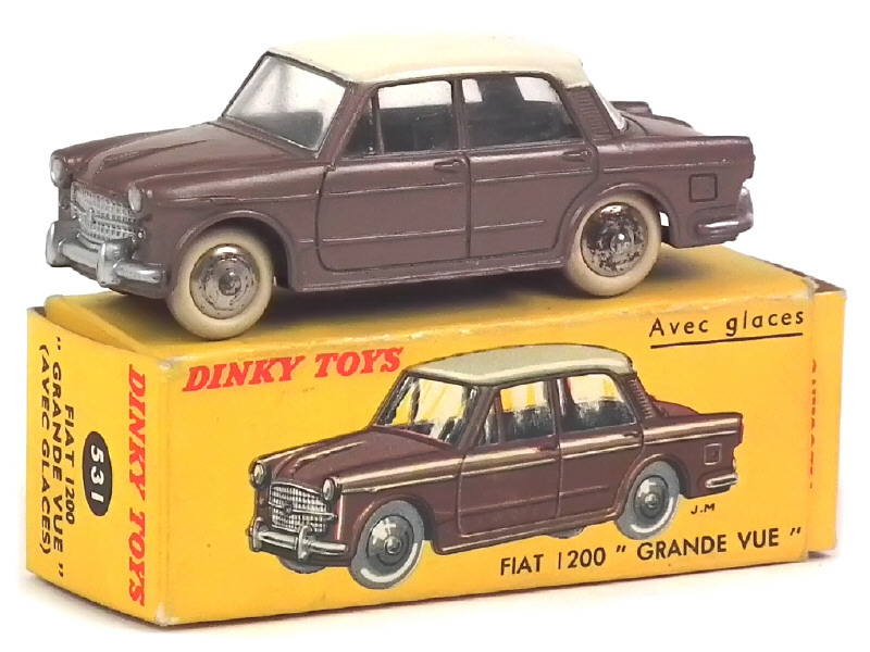 DINKY TOYS (FRANCE) 531 FIAT 1200 GRANDE VUE (version avec jantes convexes) havane métal, toit crème