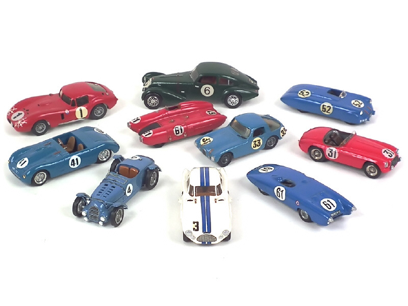 kits montés - miniatures reproduisant notamment les modèles : BENTLEY, PANHARD, DELAHAYE, RENAULT & FERRARI (train avant à refixer) - on y retrouve notamment les marques : IDEA 3, MANOU, PROVENCE MOULAGE & CCCI - possibilité de petits manques
