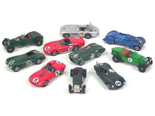 8 kits montés - miniatures reproduisant notamment les modèles : MORGAN, FERRARI, PEUGEOT, MERCEDES, ASTON MARTIN & JAGUAR - on y retrouve notamment les marques : SOLIDO (état 'R'), WESTERN MODELS, MIKANSUE, STARTER & ESDO - possibilité de petits manques