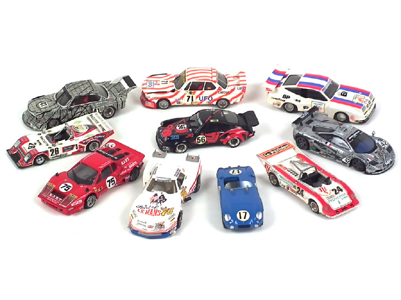 9 kits montés - miniatures reproduisant notamment les modèles : BMW, LOLA, CHEVRON, CHEVROLET & Mc LAREN - on y retrouve notamment les marques : MINI RACING, AMR, MRE & MINICHAMPS - possibilité de petits manques